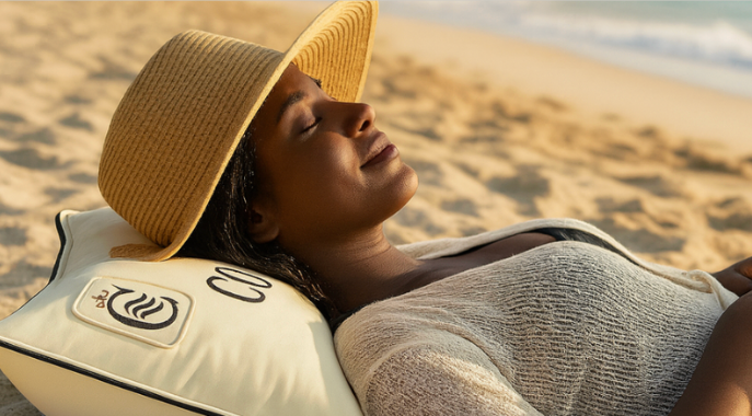 Coolavo’s cooling pillow keeps you comfortable on planes, cars, beaches, and beyond; attaching easily to any chair or luggage while holding your essentials with hidden storage, so you can relax without compromise.